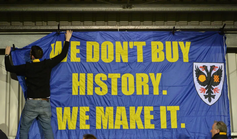 Πανό σε παιχνίδι απέναντι στην MK Dons το 2017.