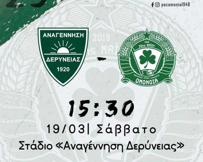 Σήμερα η πώληση των εισιτηρίων για τον αυριανό αγώνα με αντίπαλο την Αναγέννηση Δερύνειας. Για την ομάδα μας θα διατεθούνΠερισσότερα