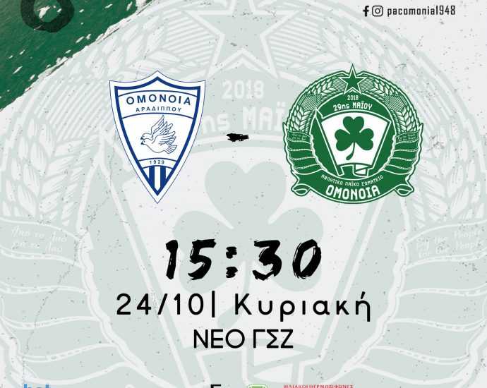 Αύριο η προπώληση για τον επόμενο αγώνα με την Ομόνοια Αραδίππου Ομόνοια: “Η ΟΜΟΝΟΙΑ του ΛΑΟΥ αυτή την Κυριακή τοΠερισσότερα