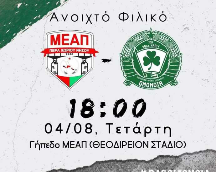 Ομόνοια: ” 1ο Ανοιχτό Φιλικό Την ερχόμενη 📅Τετάρτη 04 Αυγούστου η 🕙ώρα 18:00 στο 🏟γήπεδο της Μεαπ (Θεοδίρειον Στάδιο) ηΠερισσότερα