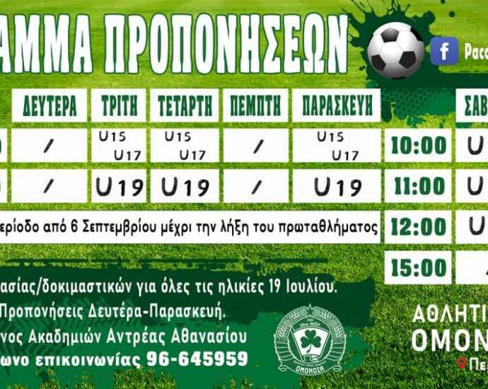 PAC Omonoia 29M: Ομονοιάτισσες/Ομονοιάτες Το Σωματείο μας ανακοινώνει ότι δέχεται αιτήσεις από ποδοσφαιριστές για συμμετοχή σε δοκιμαστικά για τη στελέχωσηΠερισσότερα