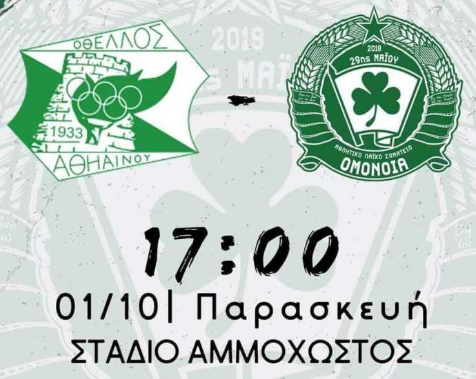 Τον Οθέλλο Αθηαίνου αντιμετωπίζει η ΟΜΟΝΟΙΑ σε παιχνίδι για την 4η αγωνιστική του πρωταθλήματος Β’ Κατηγορίας. Ο αγώνας θα γίνειΠερισσότερα