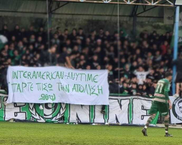 Στο πλευρό των απεργών της Interamerican στέκεται η Θύρα 9. Οι οργανωμένοι μας ανέβασαν πανό στο τελευταίο παιχνίδι απέναντι στηνΠερισσότερα