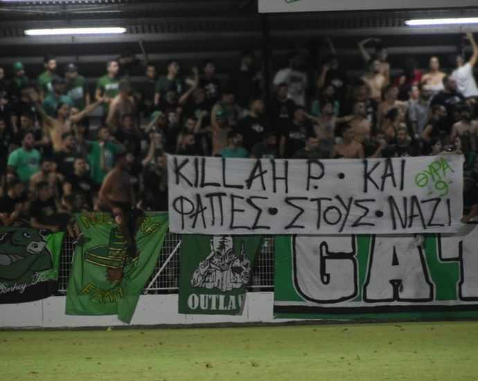 Με ένα πανό με στίχο του ράπερ ΛΕΞ επέλεξε η Θύρα 9 να συνοδεύσει το κορεό της κατά την έναρξηΠερισσότερα