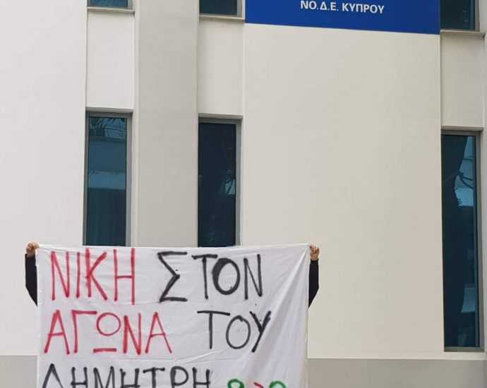 Παρέμβαση πραγματοποίησε η Θύρα 9 στα γραφεία της Νεας Δημοκρατίας Κύπρου με αφορμή την απεργία πείνας του Δημήτρη Κουφοντίνα γιαΠερισσότερα