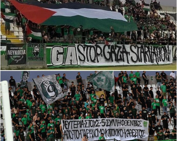 Αδάμος: Βγάζει η ΘΥΡΑ 9 πανό στο χθεσινό φιλικό να σταματήσει η λιμοκτονία στη Γάζα και τρελαίνονται στα σχόλια σταΠερισσότερα