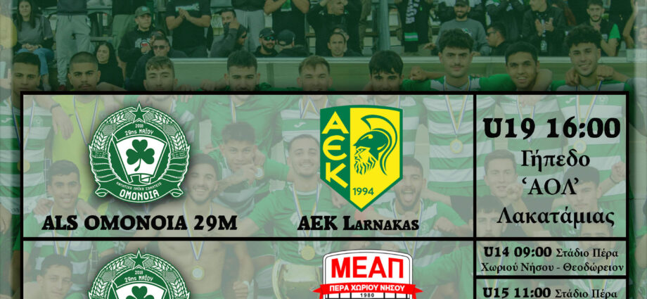 Δεύτερη αγωνιστική για τους ‘μικρους’ μας που θα αγωνιστουν με την αντίστοιχη της ΜΕΑΠ Πέρα Χωρίου Νήσου. Κ14 και Κ15Περισσότερα