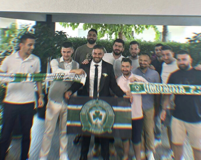 Με το κασκόλ της Ομόνοιας Με το κασκόλ της Ομόνοιας από την μπουτίκ μας διασκέδασαν στον γάμο του Αντρέα καιΠερισσότερα