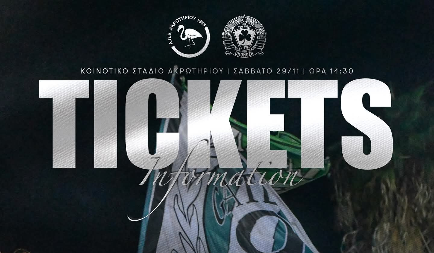 “☘️ Μας έχουν δοθεί μόνο 150 εισιτήρια για τον αγώνα με την ΑΠΕΑ Ακρωτηρίου.