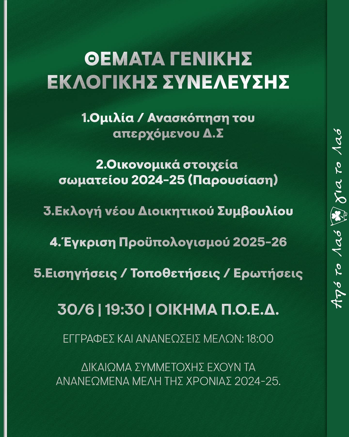 Πραγματοποιείται σήμερα στις 19:30 στο οίκημα της ΠΟΕΔ η γενική συνέλευση του σωματείου.