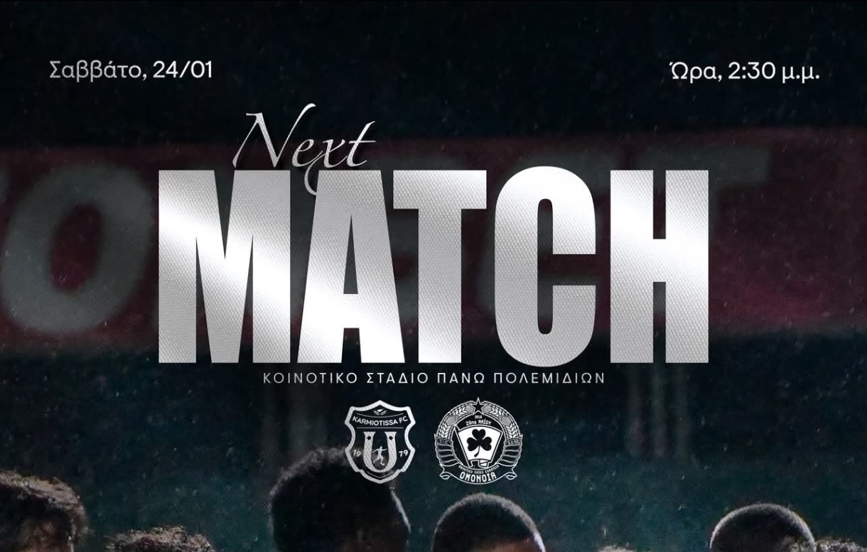 Ο αγώνας θα διεξαχθεί χωρίς την παρουσία κόσμου λόγω τιμωρίας της ομάδας της Καρμιώτισσας.
