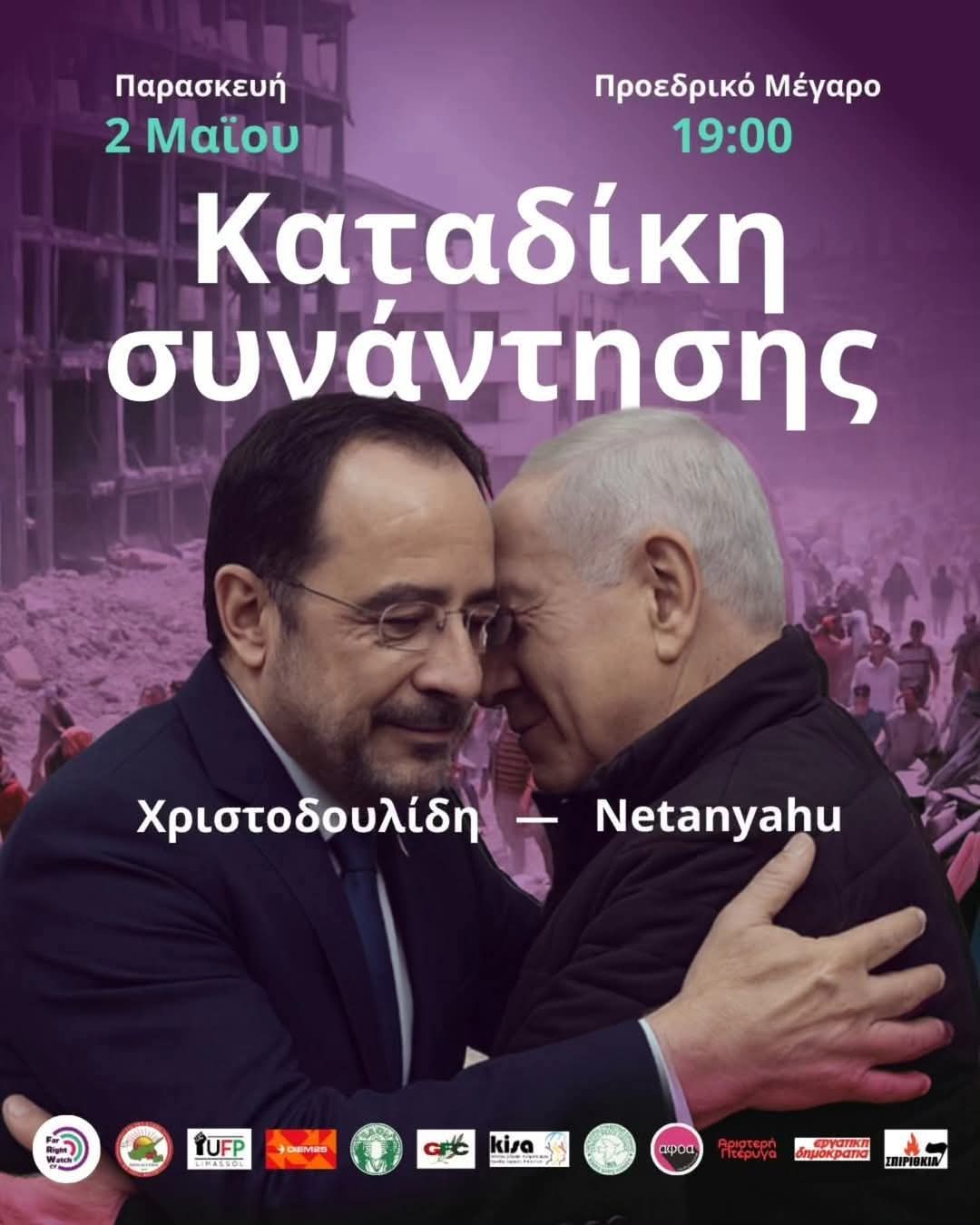 Ανακοίνωση απο Πολιτιστικό για την συνάντηση του προέδρου Χριστοδουλίδη με τον εγκληματία πολέμου Βενιαμίν. Απόψε στις 19:00 θα πραγματοποιηθεί στο προεδρικό εκδήλωση διαμαρτυρίας.