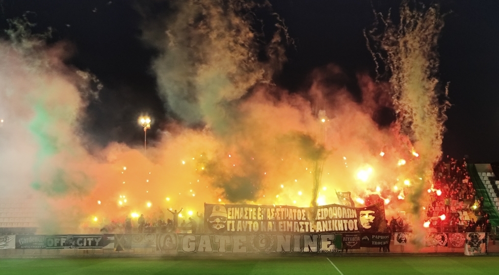 Με φωτοβολίδες και ένα πανό που έγραφε τα λόγια του Τσε Γκεβάρα, “Είμαστε ένας στρατός ονειροπόλων γι’ αυτό και είμαστε ανίκητοι”, υποδέχθηκε η Θύρα 9 τους ποδοσφαιριστές μας στο χθεσινό παιχνίδι απέναντι στη Νέα Σαλαμίνα.