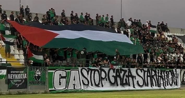 Γι’ αυτό στο σημερινό φιλικό προχωρήσαμε σε μια συμβολική παρέμβαση, αφιερωμένη στον αγωνιζόμενο Παλαιστινιακό λαό και στο αίτημα για άμεσο τερματισμό του αποκλεισμού στη Γάζα.