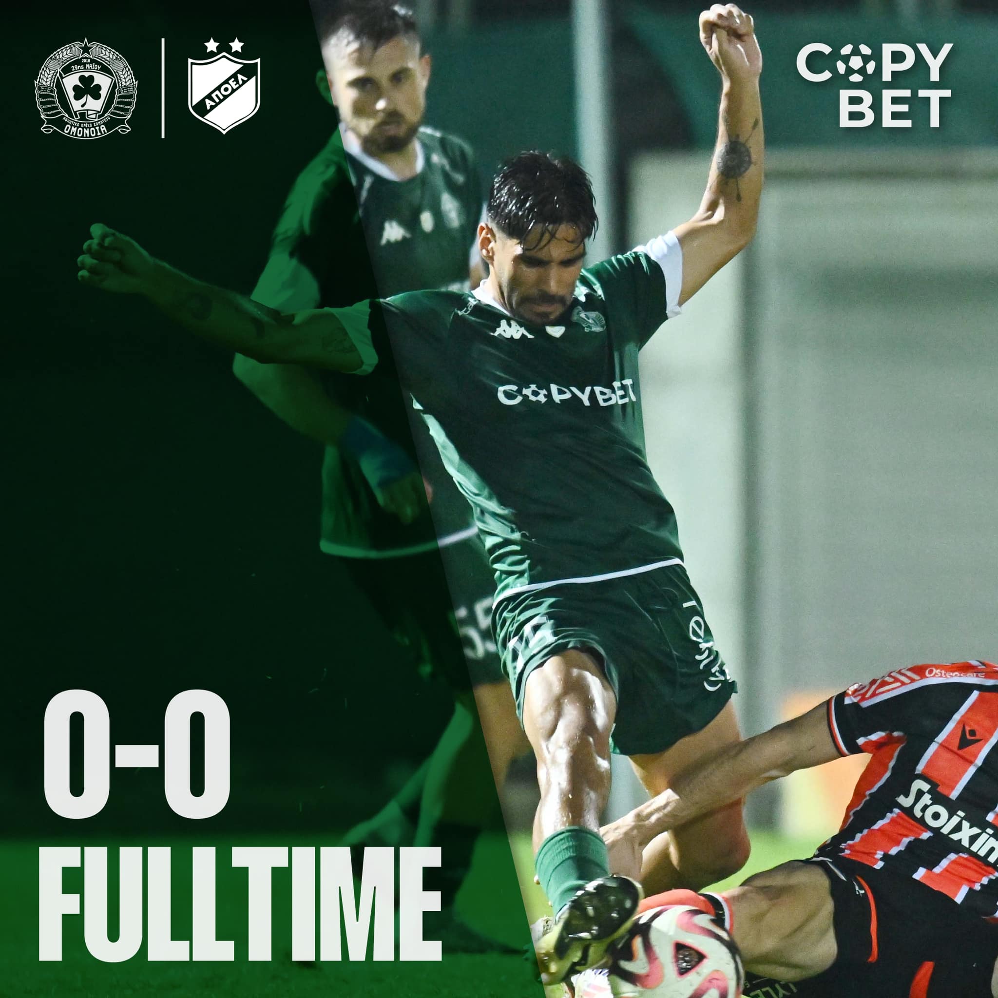Η Ομόνοια μετά από καλή απόδοση εξήλθε ισόπαλη 0-0 με το αποελ. Η ομάδα μας είχε κάποιες μεγάλες ευκαιρίες και θα μπορούσε να έφευγε με τη νίκη. Στις μεγάλες ευκαιρίες του αποελ ο Μπρολ δήλωσε παρόν και έπαιξε σημαντικό ρόλο στη διατήρηση του μηδέν.