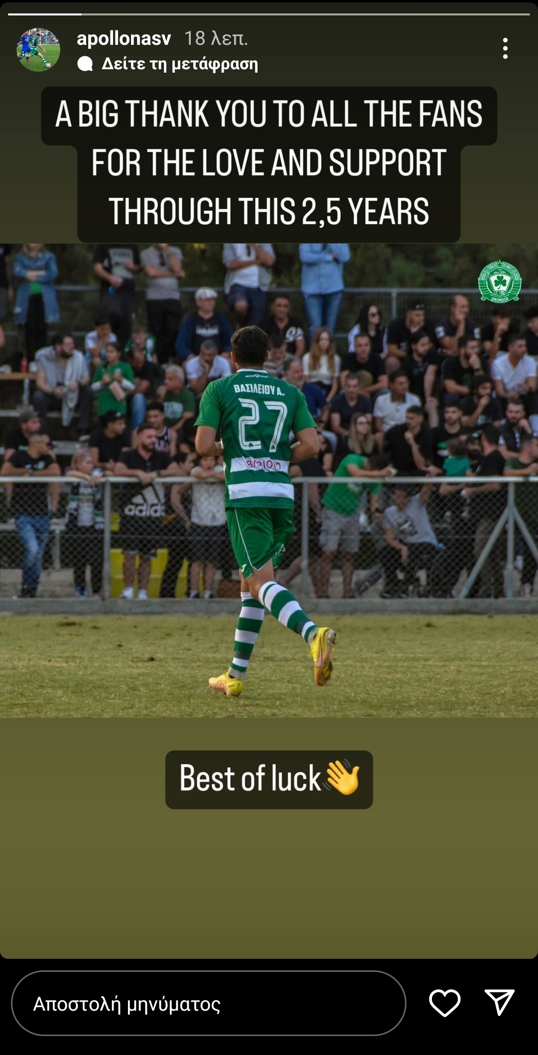 Αποχωρεί ο Απόλλωνας Βασιλείου »